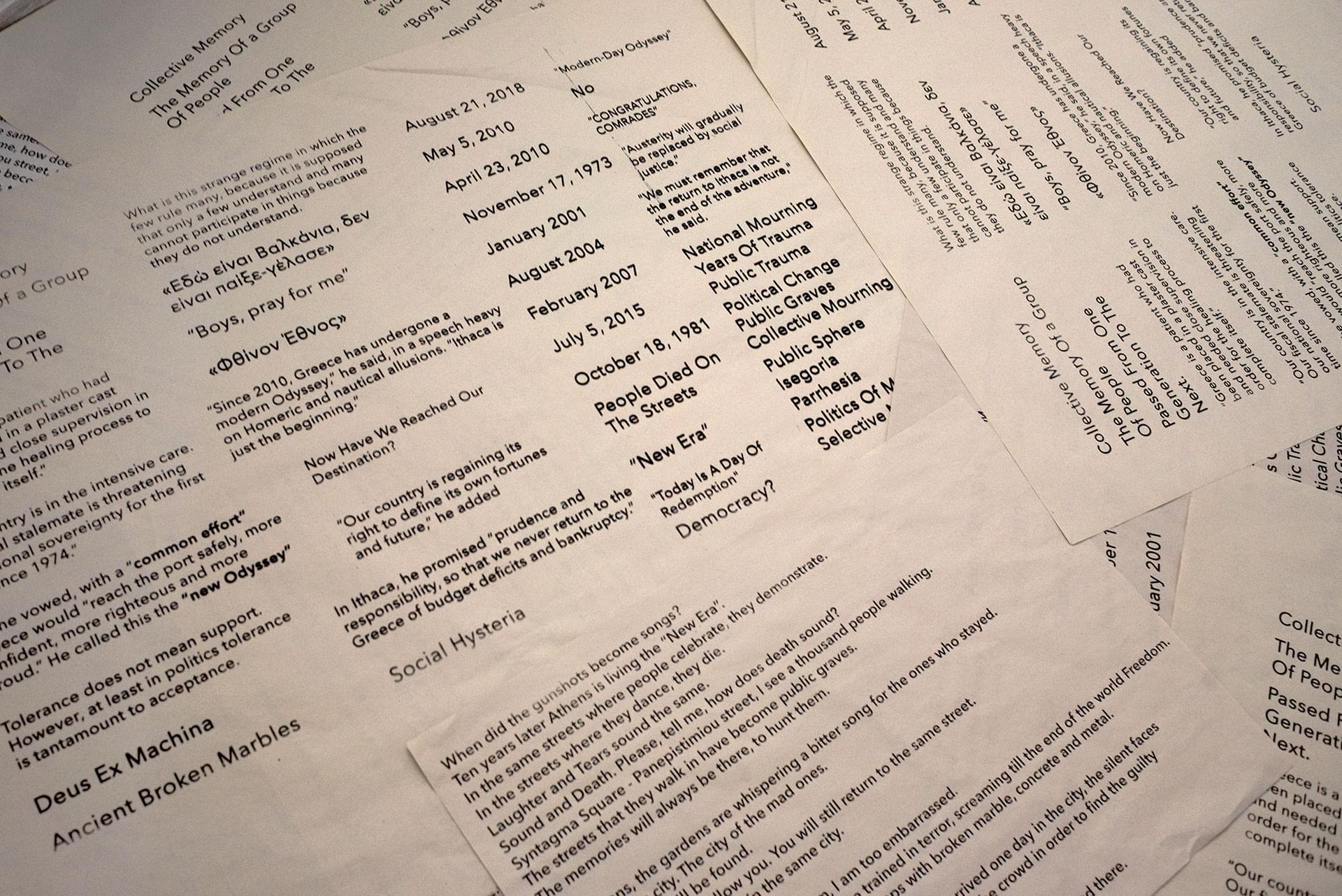 As someone who comes from a country with a quite turbulent past, collective trauma has been a continuous phenomenon in contemporary Greek history. Inspired by the writings of Castoriadis, George Perec and Jürgen Habermas, I investigated the images and events that shaped Greek collective memory and how this is inherited from one generation to the other from 1974 - the fall military junta- until today and invite the audience to perhaps question the representation of their own place.